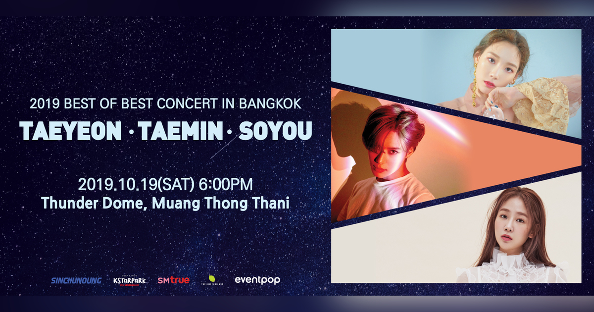 2019 BEST OF BEST CONCERT IN BANGKOK which will be held on Saturday 19th October, 2019 at Thunder Dome, Muang Thong Thani (6PM). With this incredible lineup, TAEYEON, TAEMIN and SOYOU.