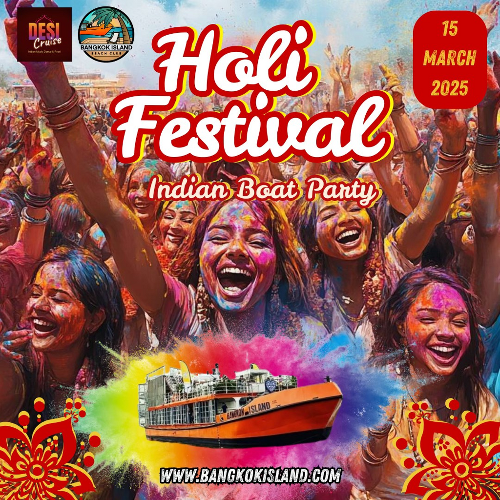 🌈✨ Get Ready to Celebrate Holi on Bangkok Island! 🎉 Mark your calendars for March 15th because we’re bringing the Holi Festival to life on a huge party boat! 🛳️💃 Cruise down Bangkok’s river 🌅 with breathtaking views, iconic monuments 🏯, and all the colors and vibes you can imagine.