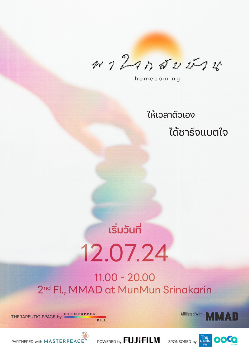 บริษัท อายดรอปเปอร์ ฟิลล์ และ MMAD, MunMun Srinakarin เล็งเห็นความสำคัญของการส่งเสริมให้ประชาชนตระหนักรู้และป้องกันปัญหาสุขภาพจิต ซึ่งเป็นอีกหนทางสำคัญในการช่วยให้ปัญหาสุขภาพจิตของคนไทยมีทิศทางที่ดีขึ้น ด้วยการออกแบบและสร้างสรรค์พื้นที่เชิงบำบัด (Therapeutic Space) ผสานกับองค์ความรู้ด้าน Digital Art ที่เป็นรูปแบบของสื่อที่มีความดึงดูดน่าสนใจ ด้วยการใช้แสง, สี, เสียง และสัมผัส เพื่อเน้นการทำงานกับฐานกาย ซึ่งเป็นฐานสำคัญในการทำงานกับอารมณ์ความรู้สึกต่างๆ ที่เกิดขึ้นภายในจิตใจ พร้อมร้อยเรียงเรื่องราวของเนื้อหา ภายใต้แนวคิดและตัวแปรทางจิตวิทยา ‘ความเมตตากรุณาต่อตัวเอง’ (Self-compassion) เพื่อส่งเสริมสุขภาวะ และเอื้อให้เกิดการตระหนักรู้ด้านสุขภาพใจ