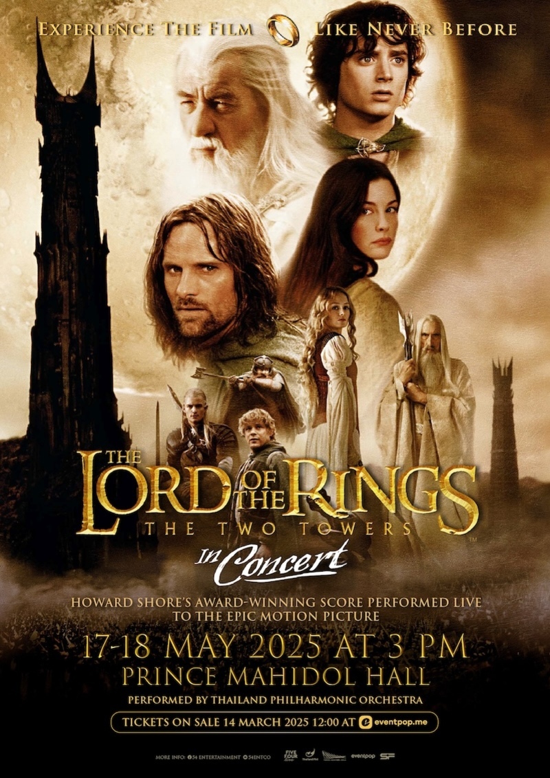 Following last year’s spectacular success the first installment of The Lord of the Rings trilogy in concert, we are thrilled to present THE LORD OF THE RINGS: THE TWO TOWERS IN CONCERT. This May, experience the epic second chapter like never before, with more than 100 musicians from the Thailand Philharmonic Orchestra and a powerful 150-voice choir joining forces to bring Howard Shore's legendary score to life.