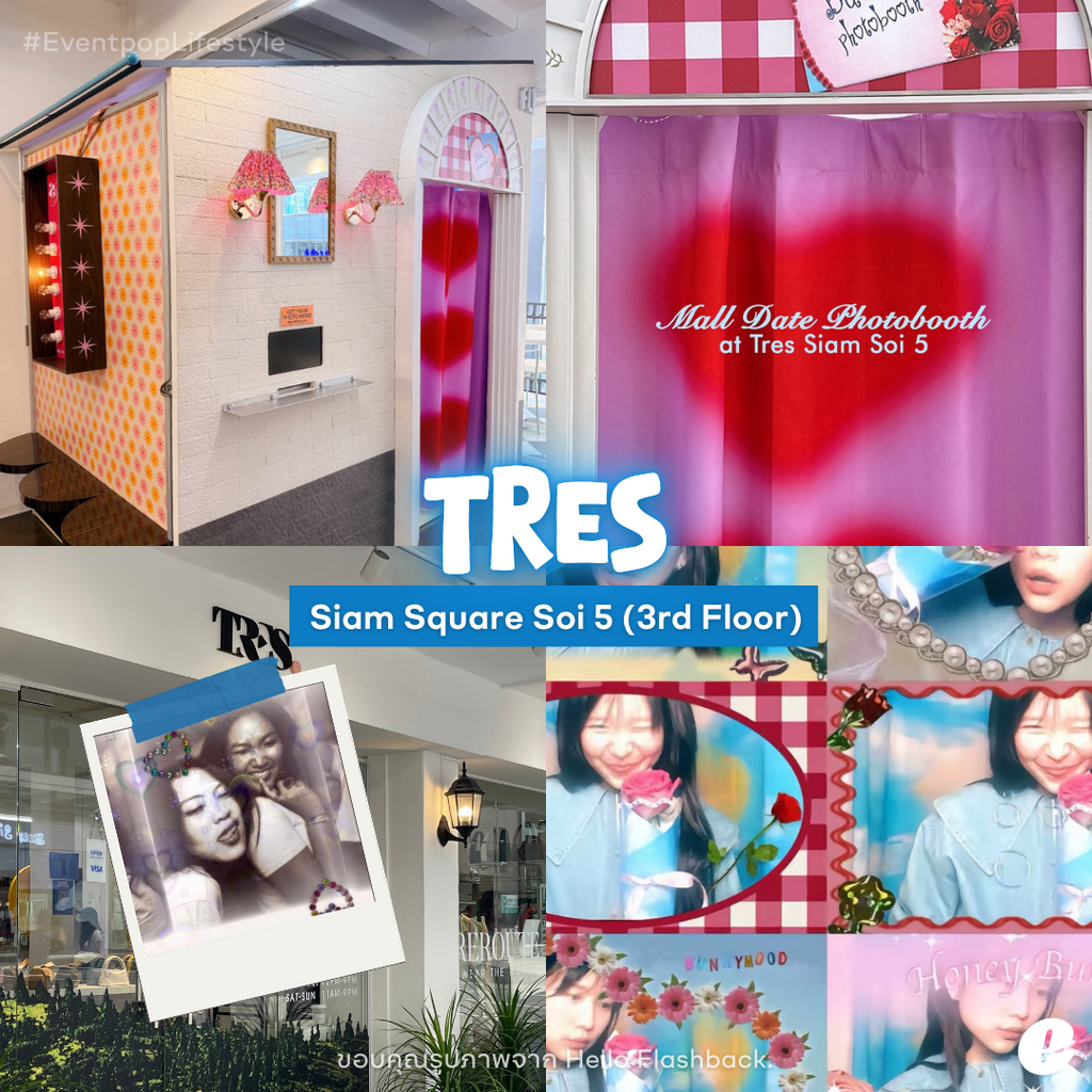 ตู้ถ่ายรูป Hello Flashback ตั้งอยู่ในร้าน Tres ชั้น 3 มีเอกลักษณ์ที่น่าสนใจคือสามารถเขียนข้อความลงไปในรูปก่อนที่จะพรินต์ได้ นอกจากตู้ถ่ายรูปแล้วยังสามารถเลือกซื้อของน่ารัก ๆ ไม่ว่าจะเป็น เสื้อผ้า หรือตุ๊กตา จากที่ร้านได้อีกด้วย