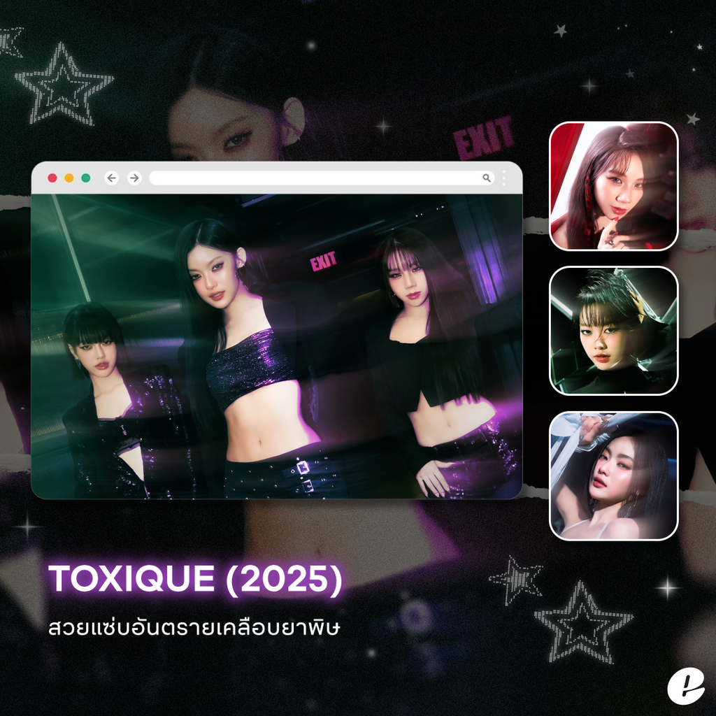 ปิดท้ายด้วยลุคสวยแซ่บอันตรายเคลือบยาพิษจากเพลง “TOXIQUE” เสิร์ฟความแซ่บและเท่แบบเย้ายวน แม้รู้ว่าอันตรายแต่ก็ห้ามใจให้ตกหลุมรักไม่ไหวและยากที่จะถอนตัว สะท้อนแนวเพลงและมุมมองความรักที่เติบโตขึ้นของ PiXXiE นำเสนอความรักในรูปแบบของความสัมพันธ์ที่ toxic ลึกลับ อันตราย