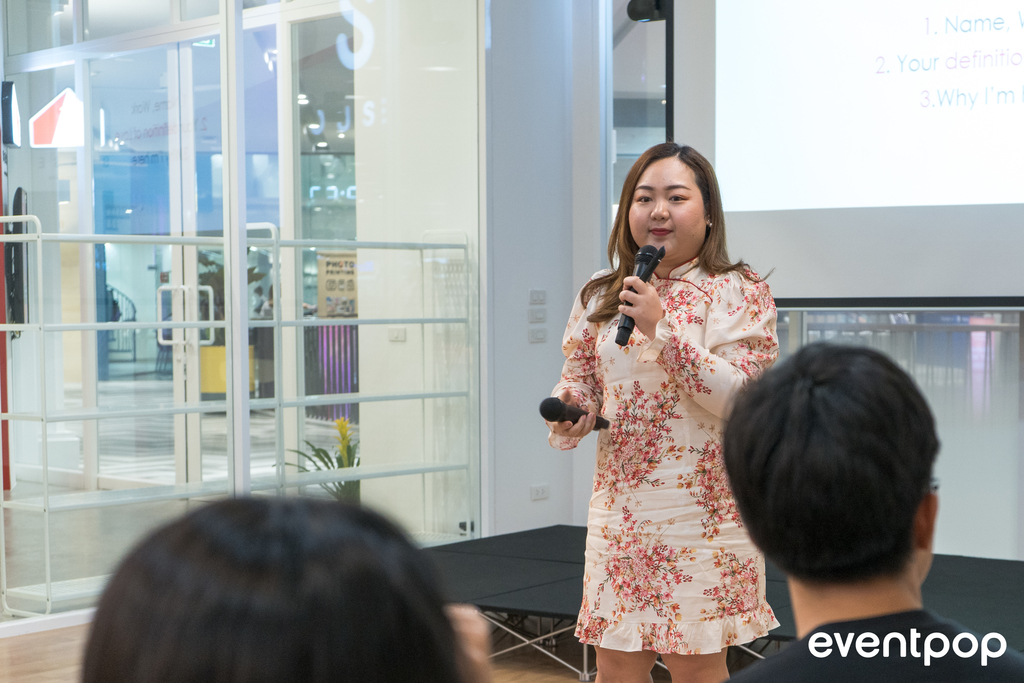 ภายในงานจะเป็นการเวิร์คชอปเล็ก ๆ แบบเป็นกันเอง ผู้เข้าร่วมงานประมาณ 8 คน เริ่มแรก Speaker ได้ให้ทุกคนแนะนำตัวเองเพื่อที่ให้ทุกคนกล้าพูดคุย ปรึกษากันมากยิ่งขึ้น หลังจากที่รู้จักทุกคนแล้ว ก็ถึงเวลาที่ Speaker จะได้แนะนำตัวเองให้ทุกคนรู้จัก "ชมพู่ - นภัสรสธร ธนาธัญธรนันท์" Business Analyst บริษัท Thai Samsung Electronics และ Partnership Consultant ของ TEDxBangkok นอกจากนี้ยังเป็น นักเขียนเกี่ยวกับ Positive Psychology Program อีกด้วย และ Learning Experience Designer ที่ BASE Playhouse เรียกว่าความสามารถครบเครื่องจริง ๆ