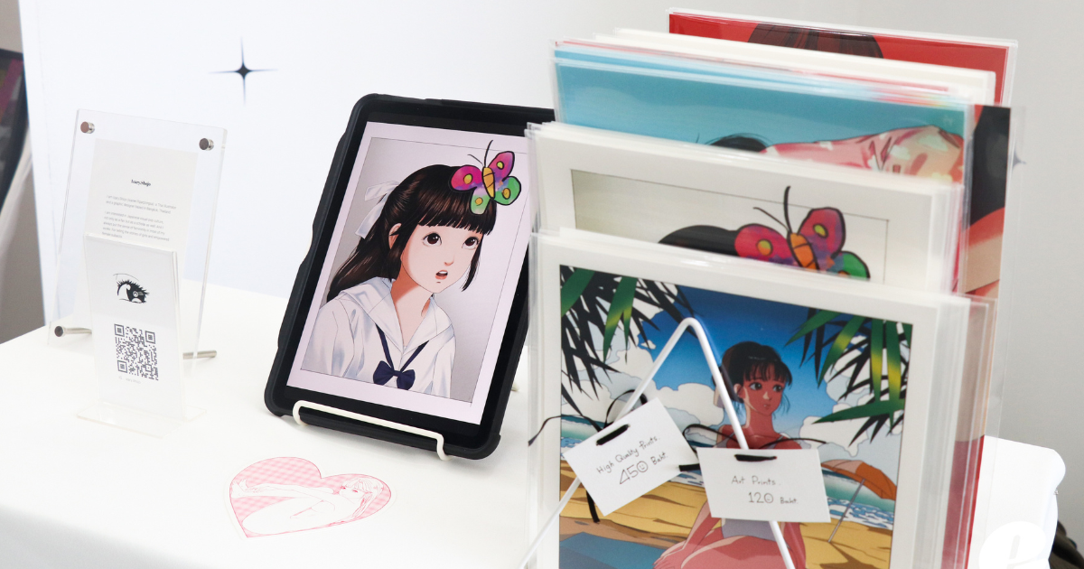 ศิลปินแต่ละคนต่างยกผลงานความภาคภูมิใจของตัวเองมาประดับไว้ที่บูท ทั้งยังจัดแสดงสินค้างานศิลปะต่าง ๆ ไม่ว่าจะเป็น โปสการ์ด, สติกเกอร์, โปสเตอร์, พวงกุญแจ และอื่น ๆ อีกมากมาย ให้ผู้เข้าร่วมงานที่ตกหลุมรักในลายเส้นงานศิลป์เหล่านั้น ได้ซื้อสะสมเก็บไว้เป็นที่ระลึก นอกจากของจำหน่ายแล้ว ศิลปินยังมี Give Away แจกให้ติดไม้ติดมือผู้เข้าร่วมงานอีกด้วย! เรียกได้คุ้มสุด ๆ