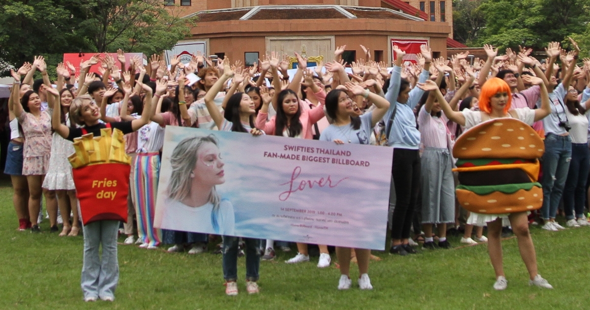เมื่อสุดสัปดาห์ที่ผ่านมา ถือเป็นปรากฏการณ์มวลพลังแฟนเพลงสุดยิ่งใหญ่ เมื่อเหล่า สวิฟตี้ (ชื่อเรียกแฟนคลับ เทย์เลอร์ สวิฟต์) กว่า 500 ชีวิต เนรมิตสนามฟุตบอล ให้เป็นบิลบอร์ดยักษ์!! เพื่อส่งข้อความไปถึง “เทย์เลอร์ สวิฟต์” กับงาน “SWIFTIES THAILAND FAN-MADE BIGGEST BILLBOARD!”
