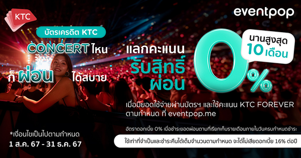 สิทธิพิเศษ แลกคะแนนรับสิทธิ์ผ่อนชำระ 0% นาน 4 เดือนที่แพลตฟอร์มจองคอนเสิร์ต ที่ร่ว...